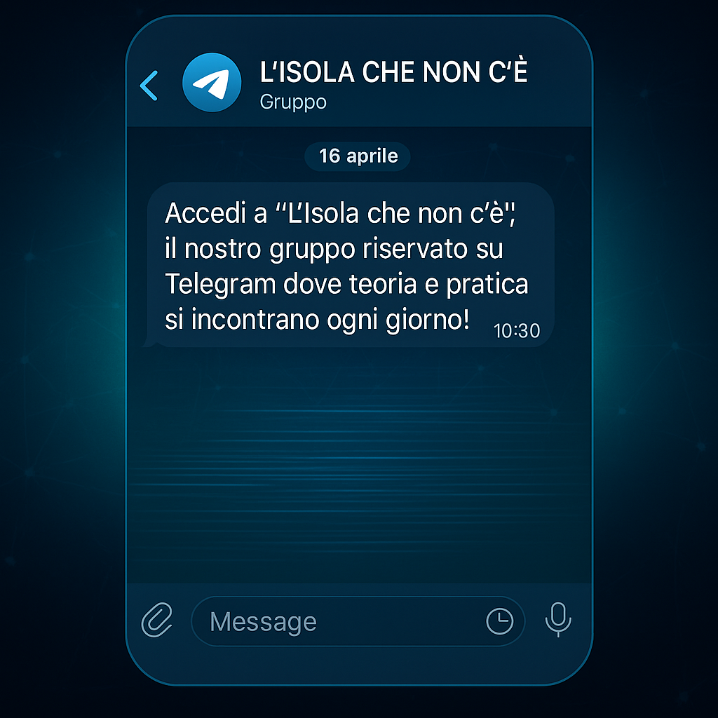 Accedi a “L’Isola che non c’è”, il nostro gruppo riservato su Telegram dove teoria e pratica si incontrano ogni giorno!
